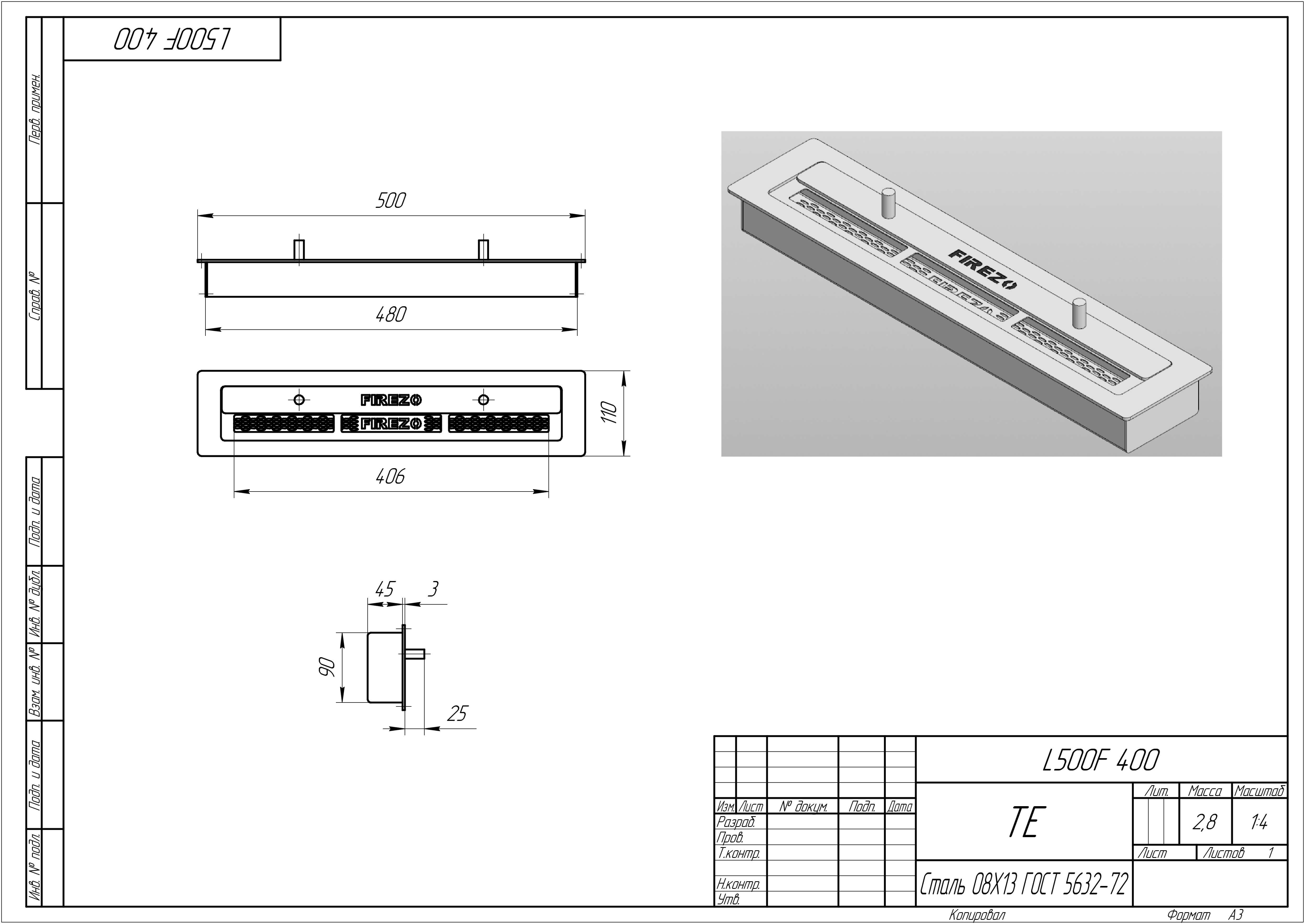 Биокамин Firezo Burner 500 имеет длину 600, но может быть изготовлен на заказ по вашим индивидуальным размерам. Линия огня имеет прямоугольную форму. Сварная конструкция очага гарантирует монолитность биокамина и исключает любые возможные проблемы, которые могут возникнуть в результате деформации резьбовых соединений под воздействием тепла после длительного использования.