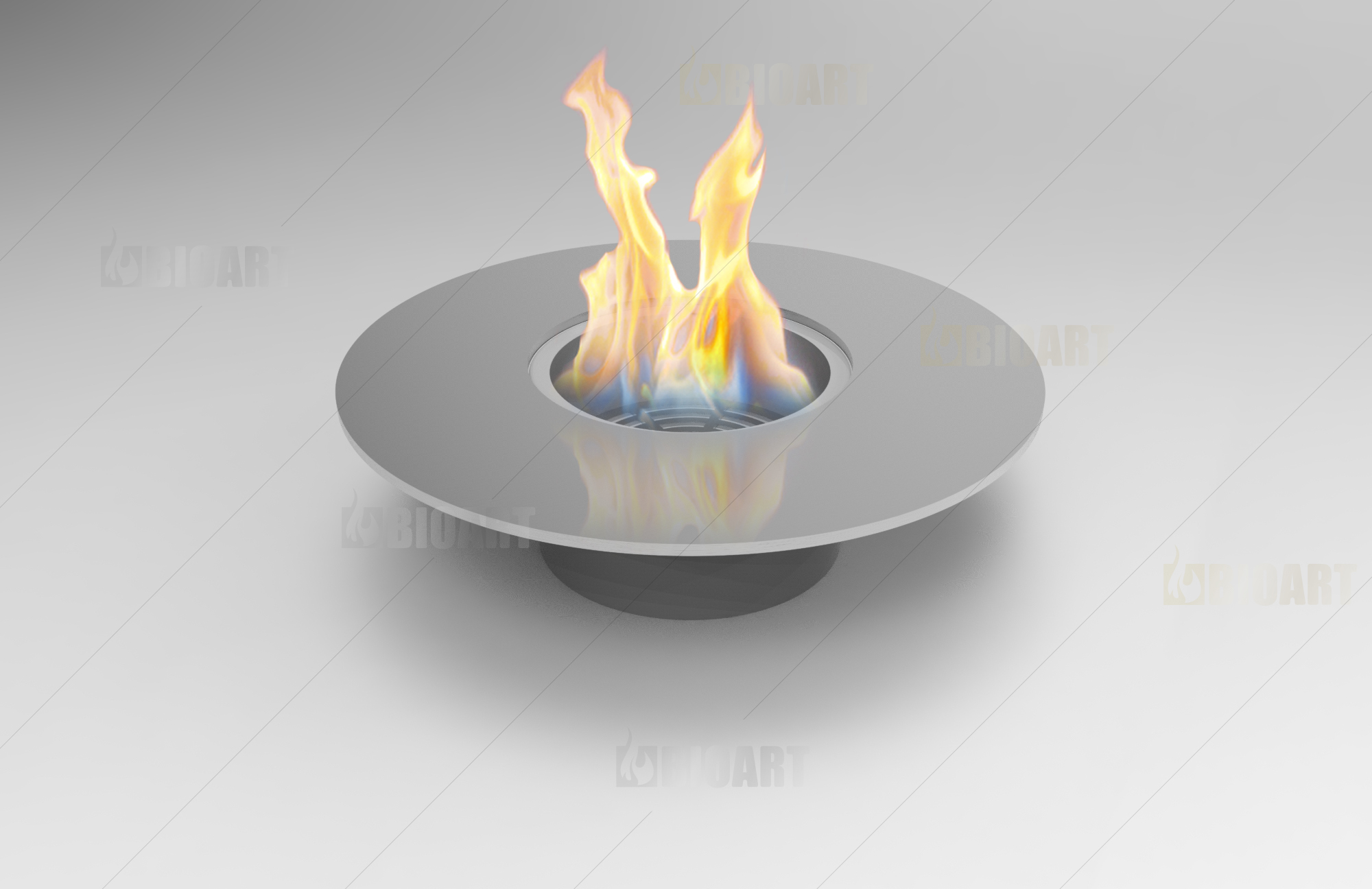 Круглая горелка Gefest от BIOART встраивается в поверхности из жаростойких материалов или жаростойкий корпус.
