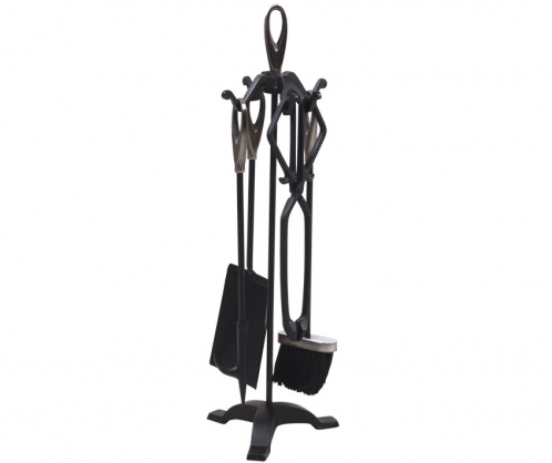 Изящная стойка-подставка вмещает набор самых необходимы предметов для ухода за камином: щипцы, кочергу и щетку с совочком. Благодаря ручке-петле на верхушке вы сможете легко переносить стойку с места на место. Серебристо-черное исполнение набора отображает спокойное благородство, столь привычное для вечеров у камина.