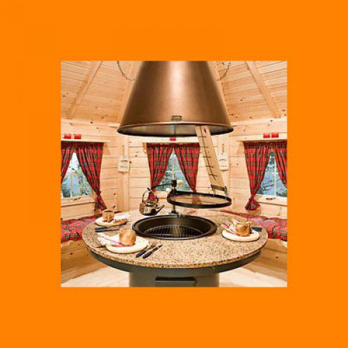 Этот гриль, предназначенный для шестиугольной беседки, может работать как на топливе, так и на газу. Он оснащен большим вытяжным колпаком, который выводит дым от огня из беседки. Рабочая поверхность гриля покрыта гранитом, отполированным до блеска. Гриль оснащен вместительным зольником, вентилятором и механизмом регуляции интенсивности горения. Очаг изготовлен из современного жаропрочного материала. В нижней части гриля предусмотрено отделение для хранения топлива.