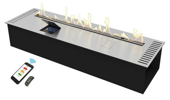 Автоматический биокамин Zefire Automatic 1000 является настоящим прорывом в современном производстве. Благодаря специальной технологии управлять прибором можно при помощи смартфона, планшета или другого гаджета. При этом такое устройство совершено безопасно в использовании, не выделяя запаха, гари и дыма. В случае возникновения любых аварийных ситуаций камин отключается автоматически. Что касается его охлаждения, то за это отвечают встроенные кулеры. Линия огня: 800 мм.