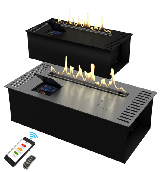 Автоматический биокамин Zefire Automatic 600 является настоящим прорывом в современном производстве. Благодаря специальной технологии управлять прибором можно при помощи смартфона, планшета или другого гаджета. При этом такое устройство совершено безопасно в использовании, не выделяя запаха, гари и дыма. В случае возникновения любых аварийных ситуаций камин отключается автоматически. Что касается его охлаждения, то за это отвечают встроенные кулеры. Линия огня: 400 мм.