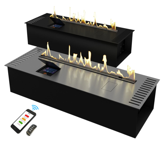 Автоматический биокамин Zefire Automatic 800 является настоящим прорывом в современном производстве. Благодаря специальной технологии управлять прибором можно при помощи смартфона, планшета или другого гаджета. При этом такое устройство совершено безопасно в использовании, не выделяя запаха, гари и дыма. В случае возникновения любых аварийных ситуаций камин отключается автоматически. Что касается его охлаждения, то за это отвечают встроенные кулеры. Линия огня: 600 мм.