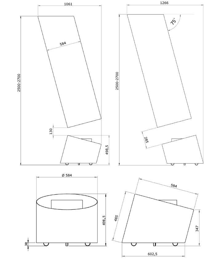 - Габаритные размеры ШxГxВ, (мм): 584x602.5x2700