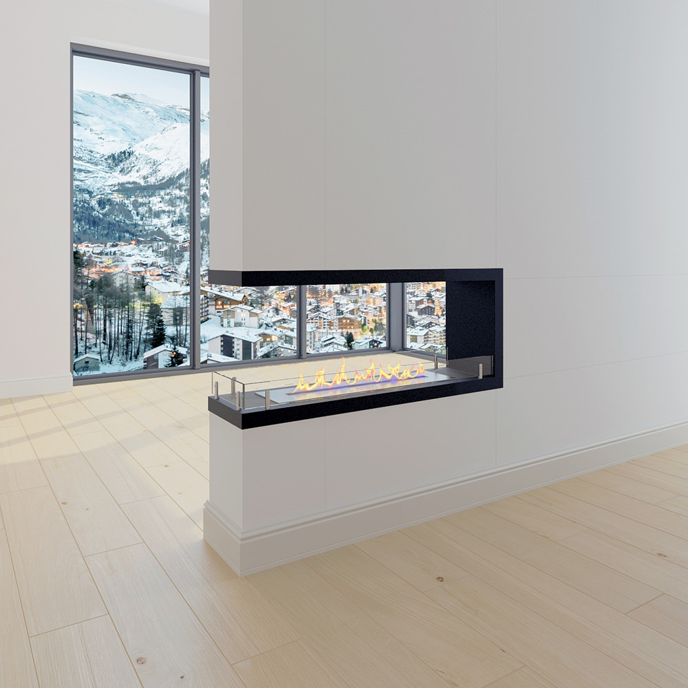 - Фронтальную часть биокамина Firezo Estremità Finestra можно оснастить защитной термостойкой перегородкой из закаленного стекла (не входит в базовую комплектацию). Такая перегородка обеспечит дополнительную защиту и придаст камину более законченный вид.