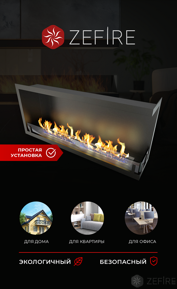 Биокамины для квартиры абсолютно безопасны для здоровья и не требуют сооружения дымоотвода. Это возможно благодаря используемому в качестве горючего биоэтанолу: сгорая, он выделяет тепло, воду и углекислый газ. Никакой сажи, едкого дыма и неприятного запаха.