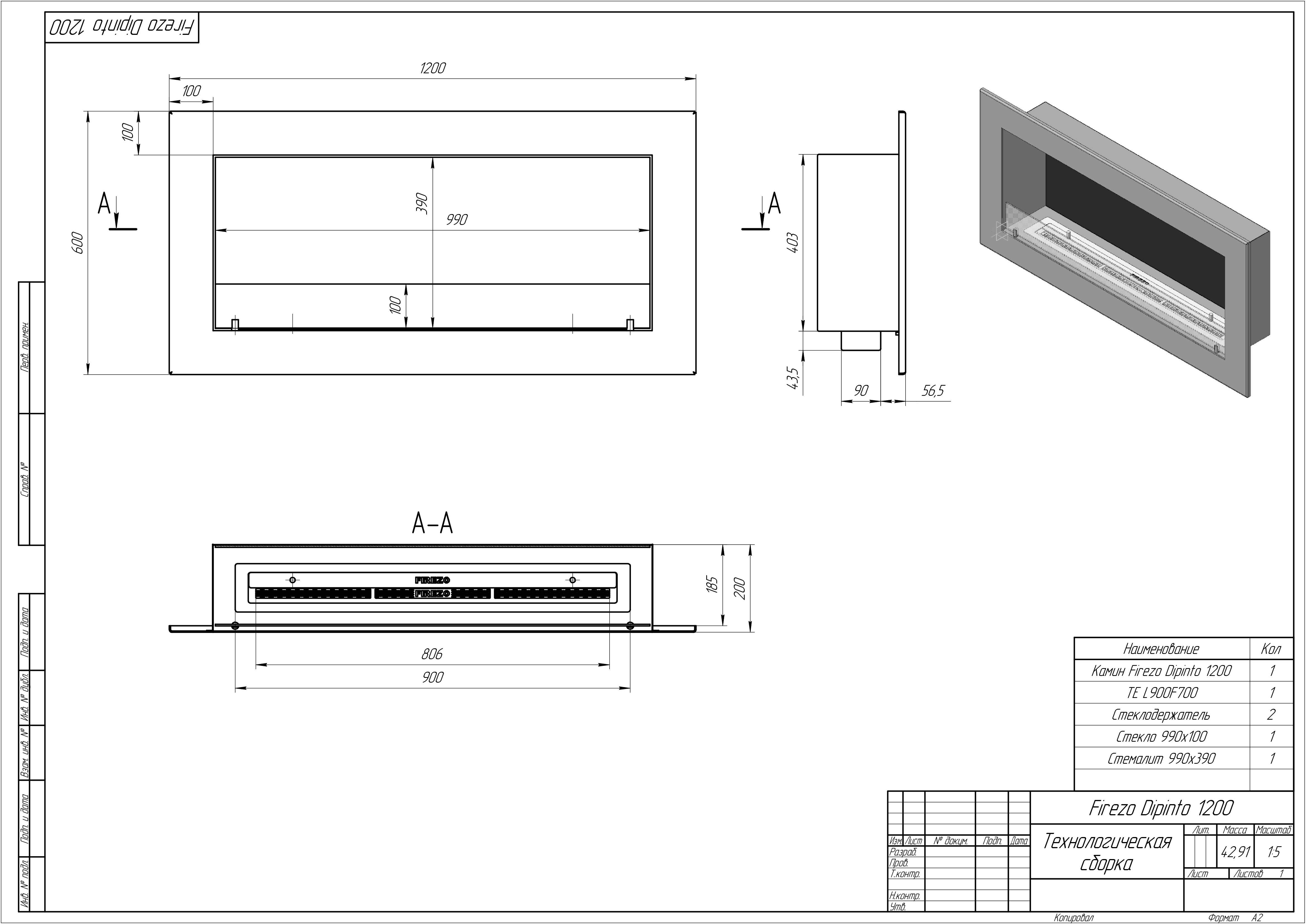 Встраиваемый биокамин Firezo Dipinto 1200