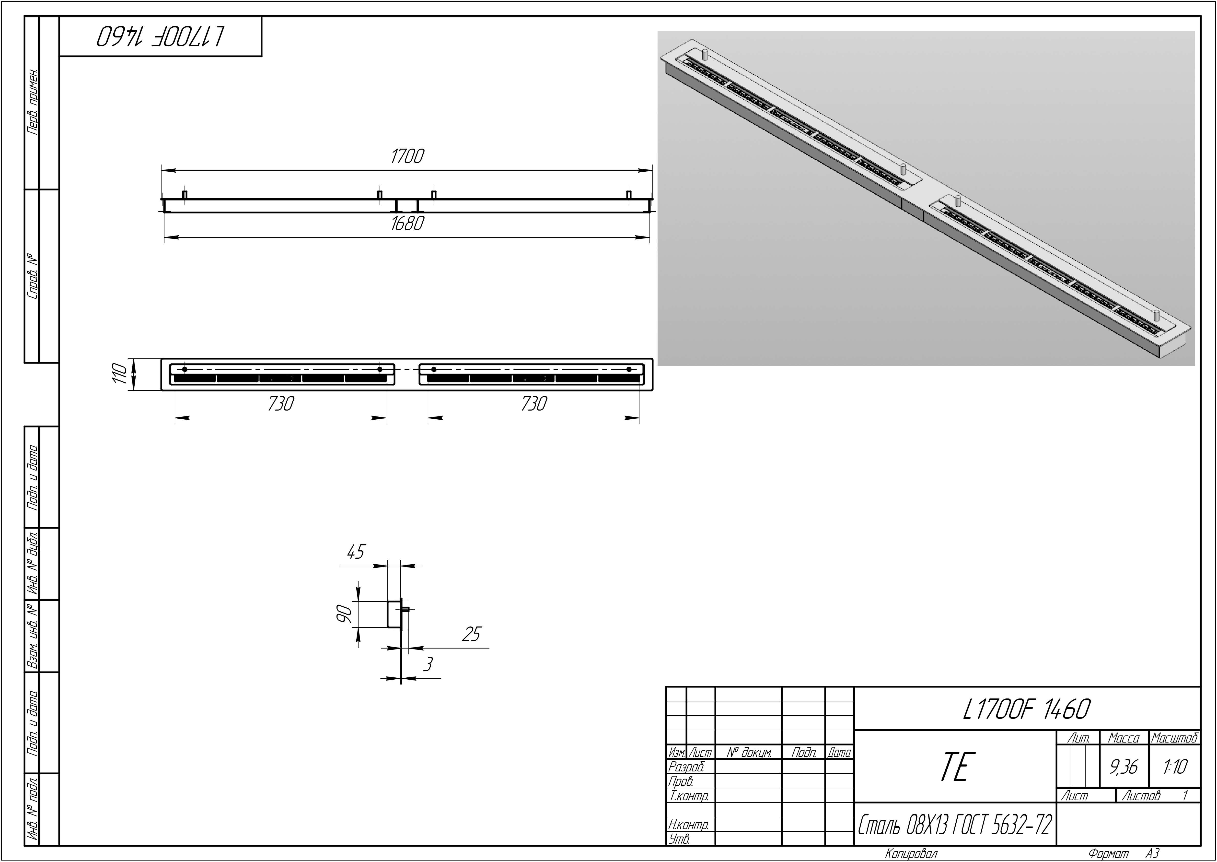 - Габаритные размеры ШxГxВ, (мм): 1800x120x43