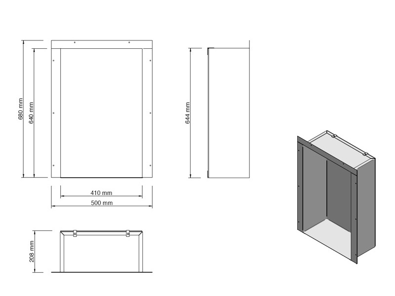 - Габаритные размеры ШxГxВ, (мм): 500x208x680