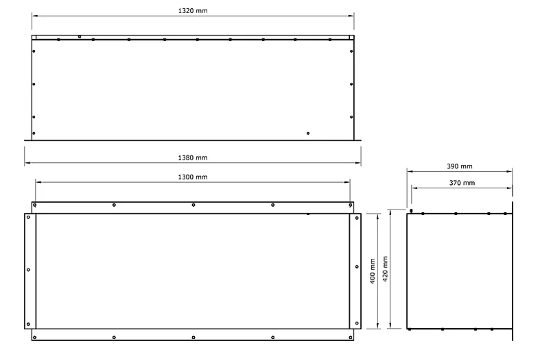 - Внутренний размер ШхГхВ, (мм) 1300х370х400