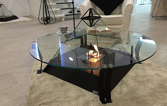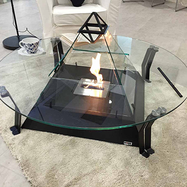 Этот предмет интерьера, в который идеально вписывается биокамин Louvre, имеет полностью прозрачную опорную поверхность, чтобы можно было поставить чашку горячего чая или положить книгу, и, одновременно, можно было наслаждаться панорамным обзором пламени.