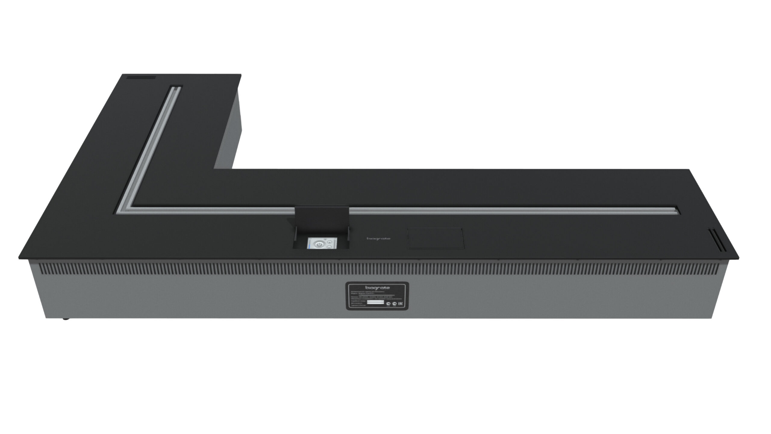 Угловая версия биокамина SmartFire L 1300. В базовый комплект входят пульт дистанционного управления и внешний датчик температуры. Горелка также укомплектована, модулем Wi-Fi и звуковым модулем.