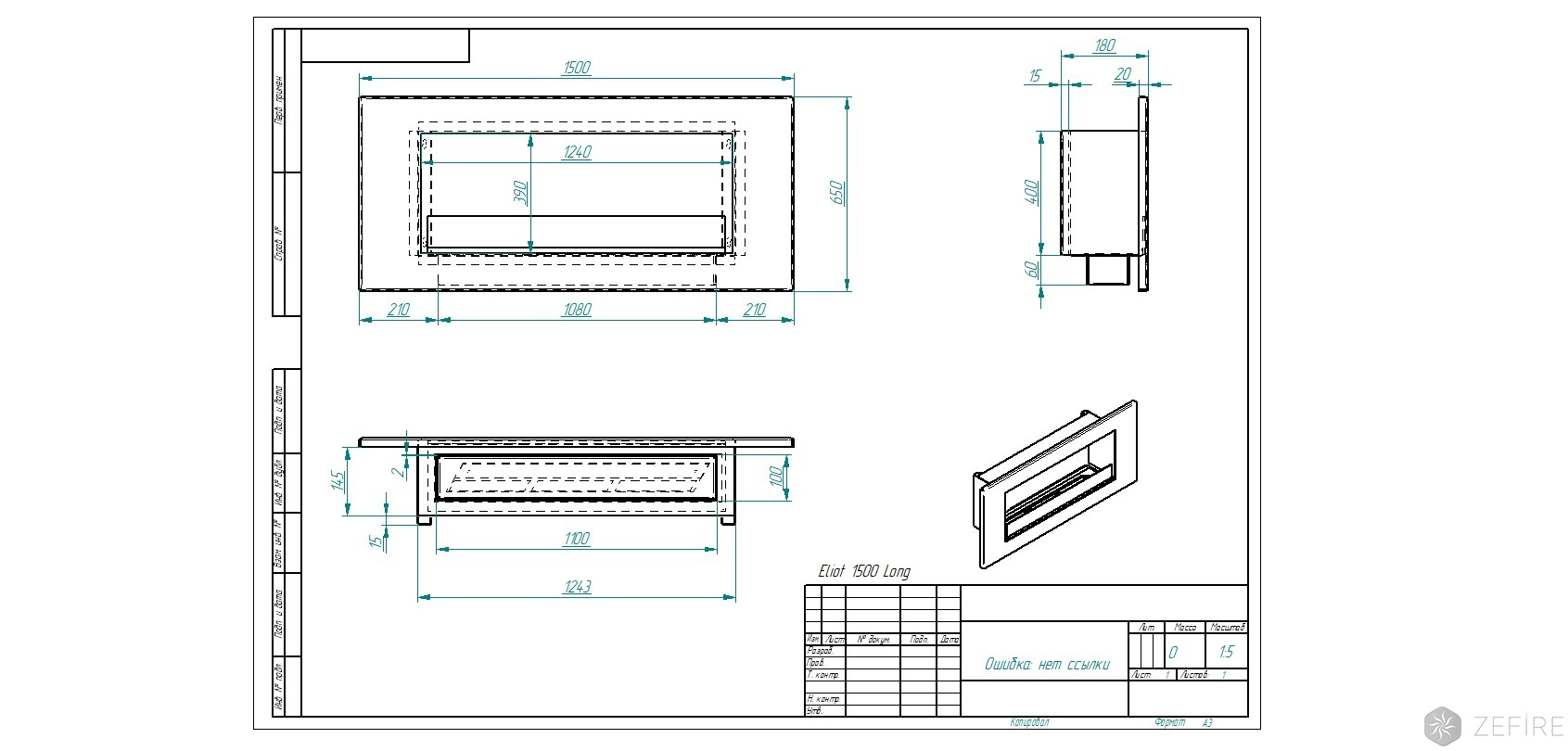 Zefire Elliot 1500 Long – лаконичная и стильная модель встраиваемого настенного биокамина, которая будет одинаково удачно смотреться в современном и классическом интерьере. Такой биокамин не занимает в помещении лишнего пространства, потому подойдет даже для небольших площадей. Его монтаж не требует устройства дымохода или вытяжки и может выполняться без специальных разрешений.