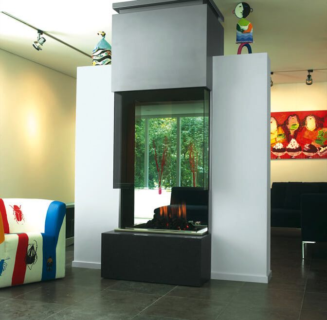 Газовая каминная топка Boley 73S в современном хай-тек стиле. Напольная модель. Способен стать для вашего интерьера настоящей конструкцией в стильном направлении хай-тек.