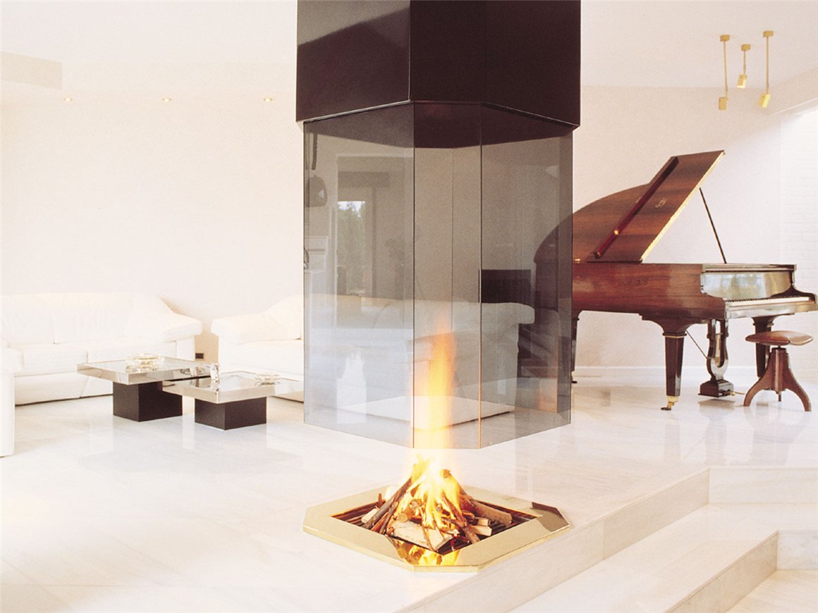 • Прямое тонированное стекло добавляет особый шик данной модели. Открытый очаг, расположенный на полу, делает модель неповторимой.