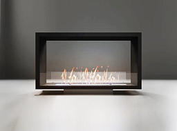 Топка камина может быть оформлена объемной или плоской горелкой. Объемная горелка выполнена по технологии Log Burner. В этом случае огонь сконцентрирован в средней части топки. Имитация дров сложена в форме небольшого костра. За счет этого создается видимость настоящего дровяного камина. Плоская горелка характеризуется равномерным распределением пламени по ее ширине. Тут также использована имитация дров, но выложены они хаотично. Материалы, из которых изготовлены «дрова», не содержат в своем составе горючих волокон. Поэтому огонь в такой топке не коптит, что очень хорошо сказывается на практичности изделия. Ведь поверхности топки дольше остаются чистыми. Задняя панель топки может быть выполнена из обычной нержавеющей стали и стали, выполненной в цвете Антрацит.