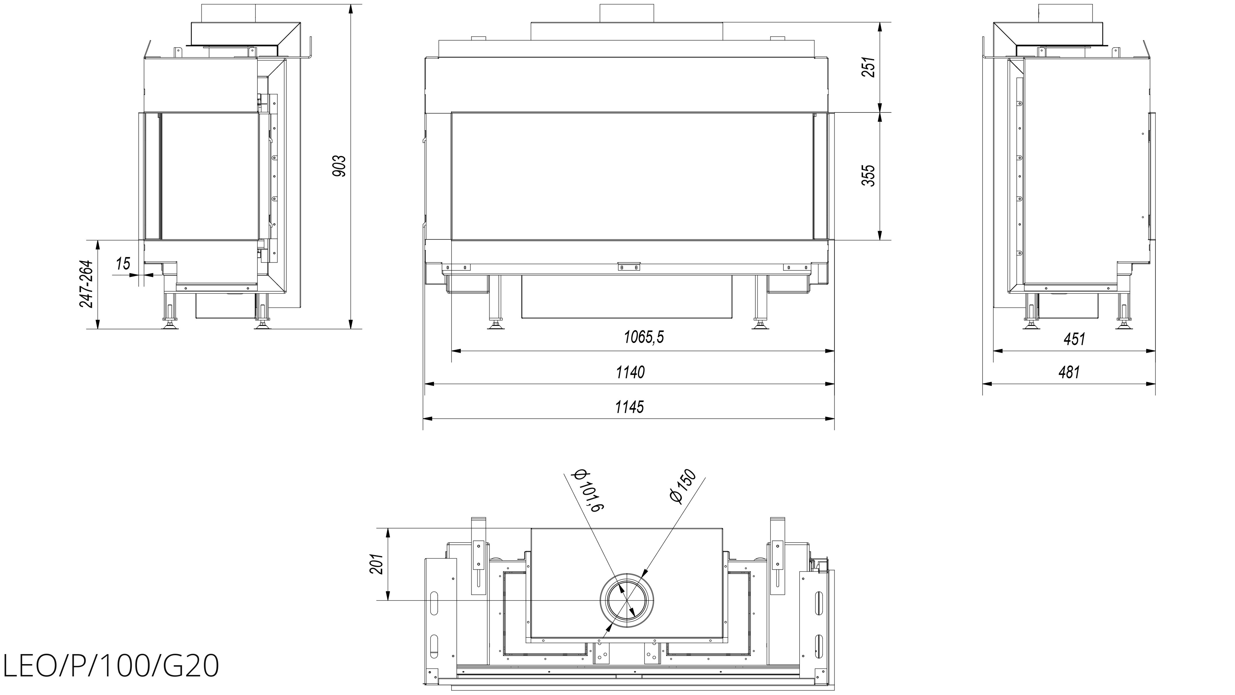 Газовый камин Kratki LEO/P/100/G20 правая магистральный газ