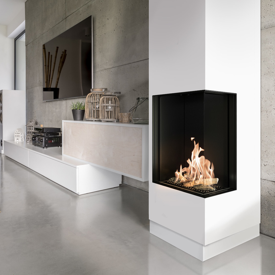 - Беспрепятственное созерцание огня благодаря невидимой рамке фасада и минимальному количеству видимых стальных элементов.