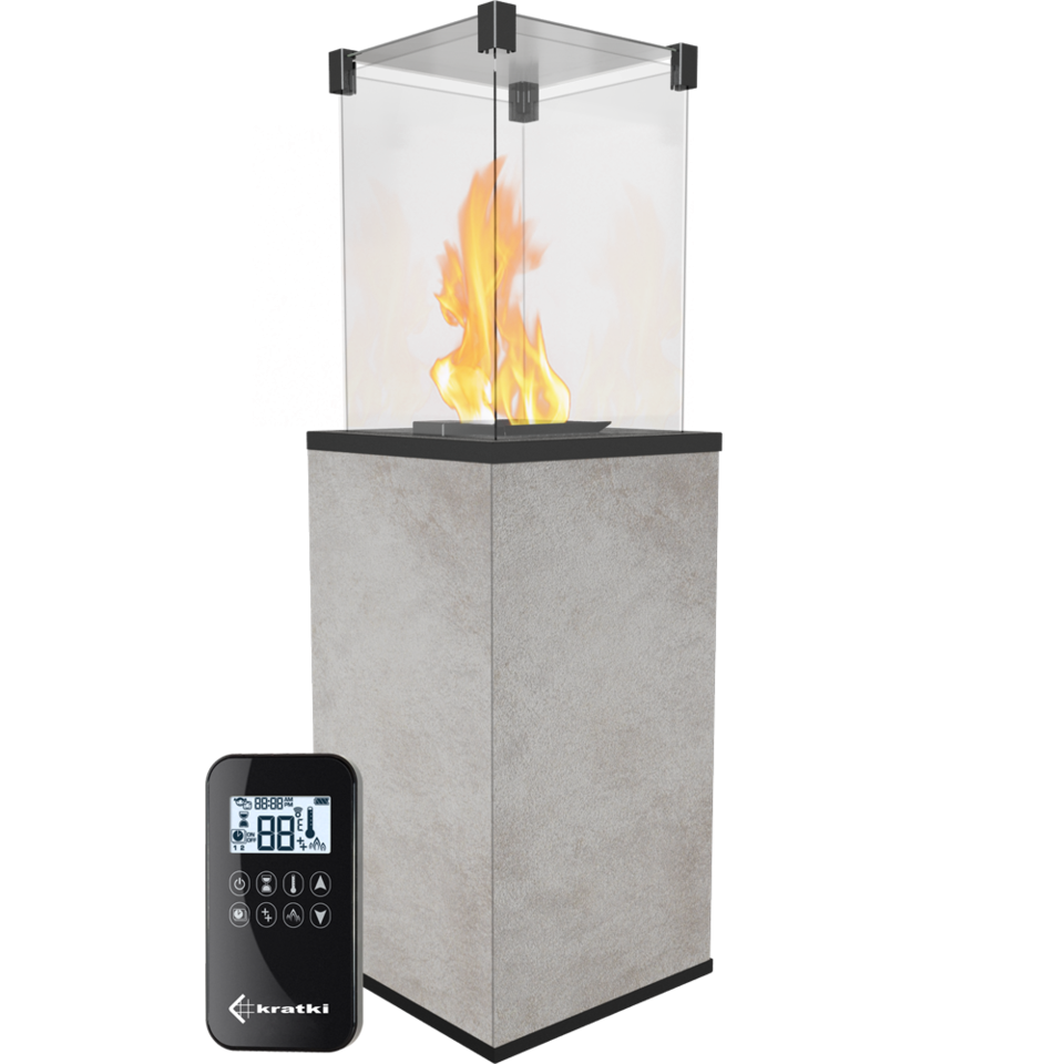 Газовый камин Kratki Patio/Mini/G31/37MBAR/Q/O/G Oxide Grigio керамогранит пульт ДУ