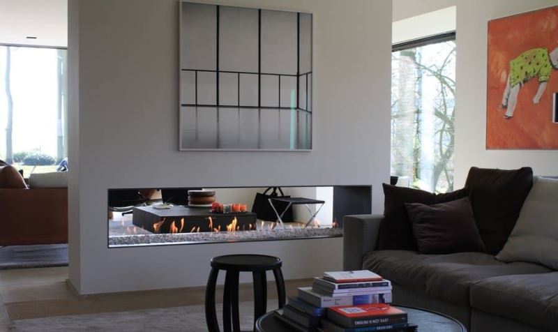 Газовый камин Vero Design Gala GA 2D – туннельная (сквозная) модель с горизонтальными окнами из стекла с двух противоположных сторон. Топка работает от природного газа бутан или баллонного газа пропан, что позволяет устанавливать камин не только в загородном доме, но и в городской квартире. Выражает актуальные на сегодняшний день веяния в создании интерьеров в стиле хай-тек.