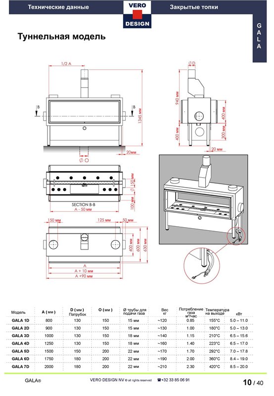 Газовый камин Vero Design Gala GA 5D – туннельная (сквозная) модель с горизонтальными окнами из стекла с двух противоположных сторон. Топка работает от природного газа бутан или баллонного газа пропан, что позволяет устанавливать камин не только в загородном доме, но и в городской квартире. Выражает актуальные на сегодняшний день веяния в создании интерьеров в стиле хай-тек.