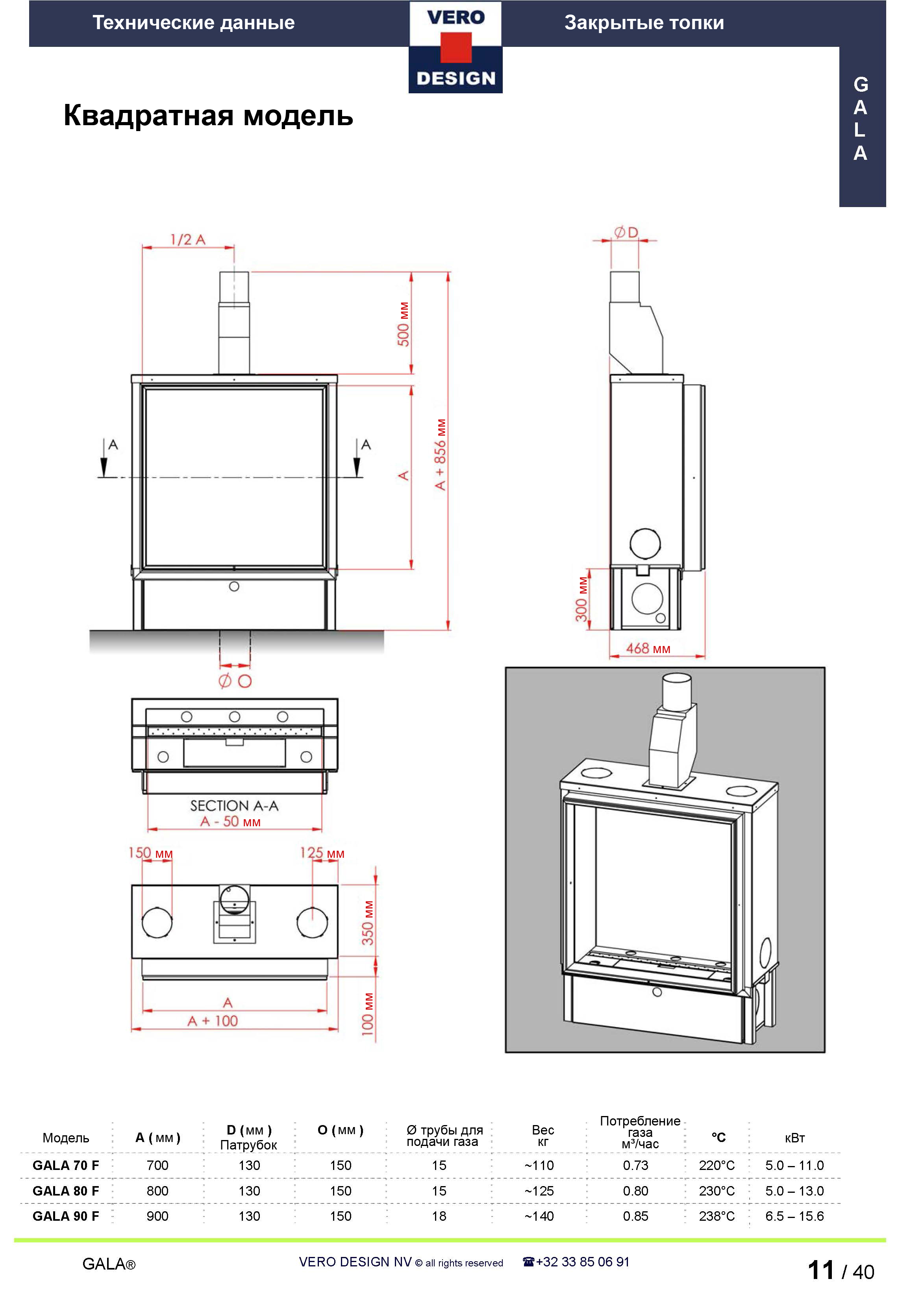 Газовый камин Vero Design Gala GA 90 F – квадратная встраиваемая модель с большим прямым окном из огнепрочного стекла. Рассчитана на использование природного газа бутан или баллонного газа пропан, что позволяет устанавливать камин не только в загородном доме, но и в городской квартире. Выражает актуальные на сегодняшний день веяния в создании интерьеров в стиле хай-тек.