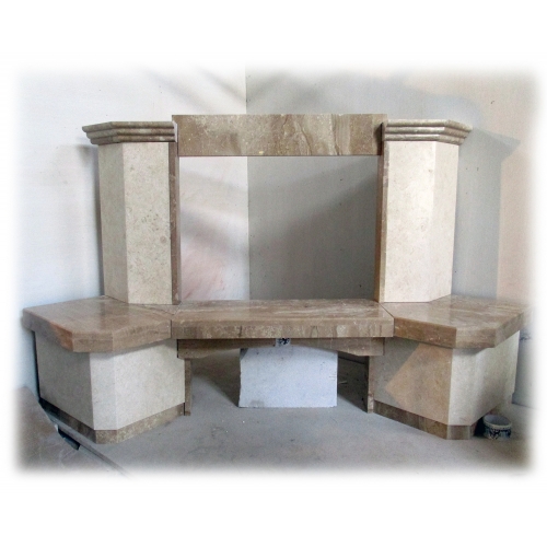 Традиционная европейская декоративная облицовка камина Agnes, изготовлен из полированного мрамора и колотого мрамора Crema Marfil. Балка выполнена из дуба.