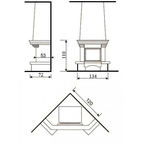 Расположение камина: угловой, пристенный
