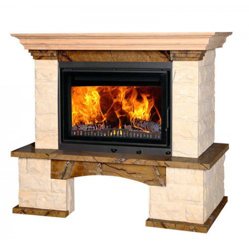 Облицовка Bella Italia (Польша) предназначена для декоративной отделки каминной топки. Облицовка изготовлена из песчаника и полированного мрамора Rayforest Braun (оттенки светло-коричневого с тёмными прожилками). Балка изготовлена из массива дуба. Подходящие топки серии 700 с прямым стеклом. Облицовка в пристенном или угловом исполнении.
