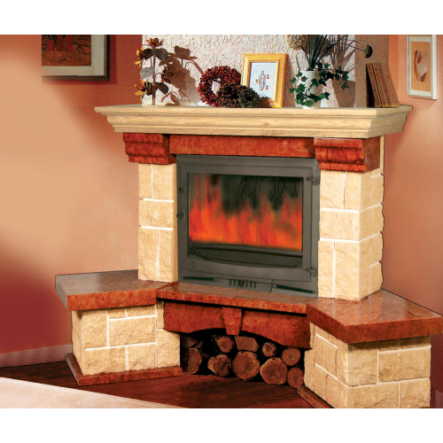 Каминная облицовка Bella Italia Odyseusz, выполненная в лучших традициях кантри стиля, предполагает угловой или фронтальный вариант расположения. Классическая облицовка польского бренда напоминает пьедестал, где золотистый отлив колотого мрамора выгодно подчеркивается полированными вставками красновато-бордовых оттенков. Венчает конструкцию рельефная балка из ценных пород древесины, используемая в интерьере в качестве декоративной каминной полки. Выбранная палитра эффектно сочетается с естественной гаммой живого пламени – символа тепла, уюта и настоящего семейного очага.