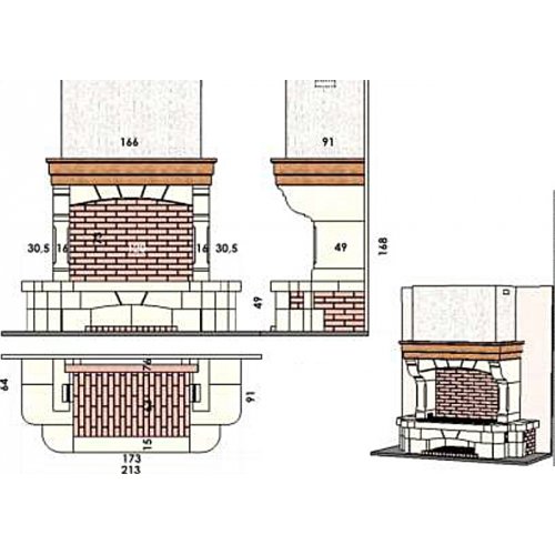- Материал камина на фото: камень золотистый бургундский, кирпич ручной работы 5 песочного цвета
