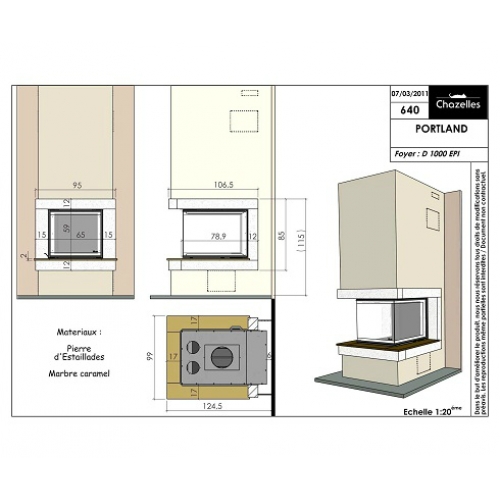 Пристенный камин с облицовкой из камня Estaillades и декоративного шлифованного мрамора с блестящей поверхностью цвета карамели. Топка с трехсторонним стеклом, что значительно увеличивается обзор огня. Особенности каминной облицовки: Встроенный камин . Камень Estaillades. Мрамор декоративный шлифованный блестящий цвета карамели. Технические характеристики каминной облицовки: Производитель: Chazelles (Франция) Стиль камина: классический Адаптация очага: под топку D1000EPI Материал топки: сталь Установка камина: трёхсторонний Топливо: дрова Присоединение дымохода: верхнее Диаметр дымохода, мм: 250 Общий размер (см) : 97 x 108 x 85. Топка : DESIGN D 1000 EPI. Вес : 280 Кг