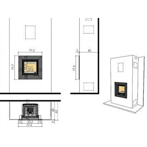 Полувстроенный камин с широкой прямоугольной рамкой из натурального камня чёрный горной породы. Встраиваемая топка с прямым стеклом. Особенности каминной облицовки: Полувстроенный камин. Камень чёрный горной породы. Опция: скамья из камня чёрный горной породы. Технические характеристики каминной облицовки: Общий размер (см) 77,2 x 2 x 77,7 Топка HP530 Вес 283 Кг