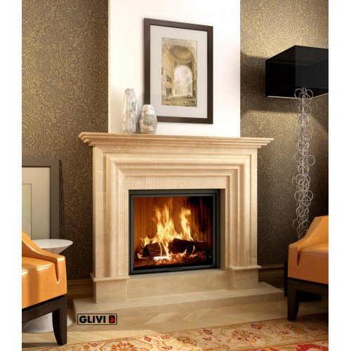 - Камин выполнен из полированного мрамора Crema Marfil.