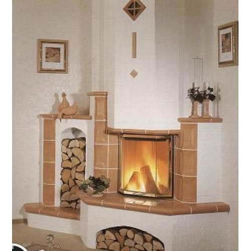Камин Hark 3/21.4. Угловой камин из изразцов. Дополнительный боковой дровник.