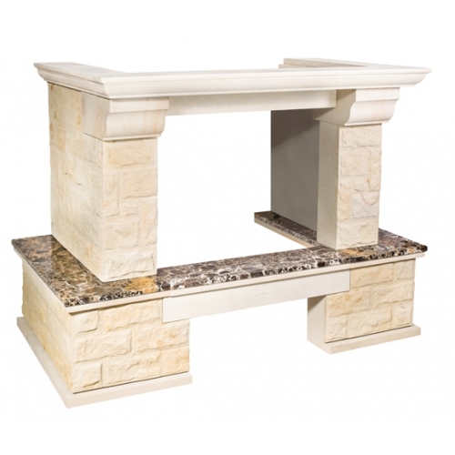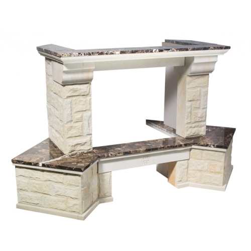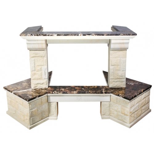 • Материал: колотый песчаник, золотистый цвет, полки и балка - мрамор Emperador Gold
