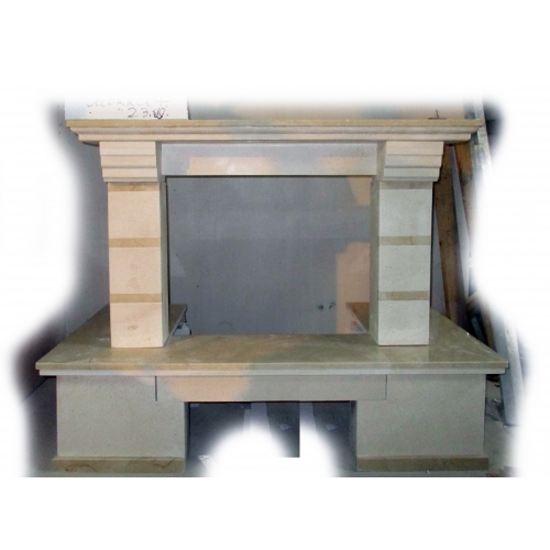 - Материал: шлифованный песчаник, золотистый или белый цвет, полки и балка - мрамор Emperador GoldПодходящие топки шириной „700 мм” с прямым стеклом
