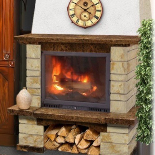 Madeira Veronica выполнена из натурального камня: мрамор Emperador и Sunny Yellow. Вариант пристенный или угловой. Подходят под эту облицовку топки шириной до 700 мм с прямым стеклом.