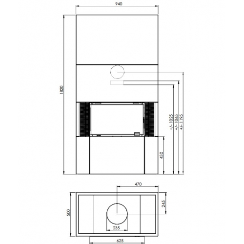 • Присоединение дымохода: - верхнее