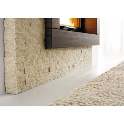Ассиметричная облицовка Palazzetti Camden, рамка которой выполнена из венге кварцита с эффектом старения и панель левая или правая (фото) из белого колотого камня.
