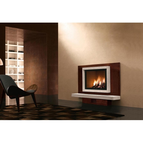 Внешний вид облицовки сделан из двух видов мрамора – белого и коричневого, которые составляют магический контраст между собой. Полированная текстура каждого мрамора сглаживает углы и камин получился геометрически целостным и необычным. Камин Break – это встроенный камин, его топка, дымоход расположены в пространстве стены. Поэтому важно соблюсти все нормы безопасности при его установке. Лучше всего производить установку такого камина при строительстве дома – так точнее произвести все соединения дымохода и топки, сделать отвод. А в готовом доме, это выполнить в разы сложнее, к тому же придется ломать уже целые стены. Облицовка камина имеет небольшую столешницу перед топкой. В нижней части, под топкой имеются отверстия для доступа теплого воздуха из топки в пространство комнаты. Благодаря им это происходит более равномерно и быстро. Качественный обогрев всего дома подарит вам данный камин. Если на вашей даче нет центрального отопления, то в период холодов этот камин позволит вам находиться на даче столько, сколько вы этого захотите. К тому же закрытая топка потребляет в разы меньше топлива, чем это делает открытая топка. Камин двух цветов может послужить цветовым акцентом, помогающим создать особенный стиль.