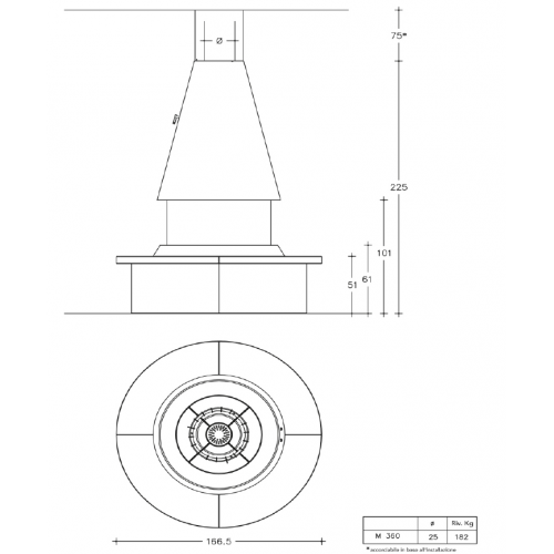 Камин совместим с топками M360 T (цилиндрический или конический кожух).