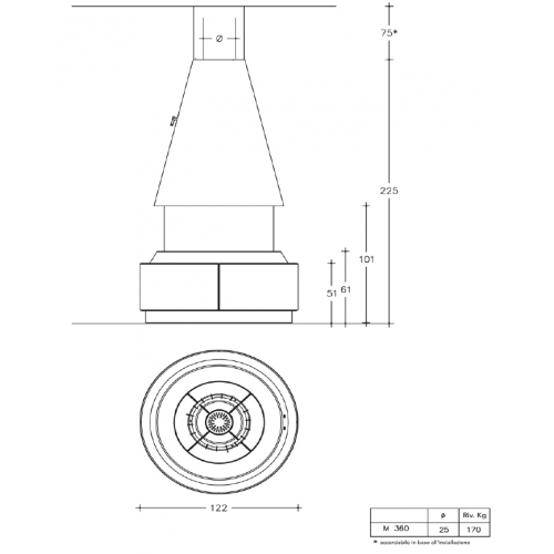 Камин совместим с топками M360 T (цилиндрический или конический кожух).