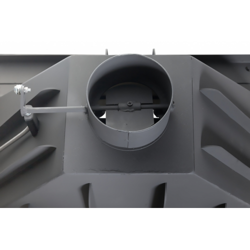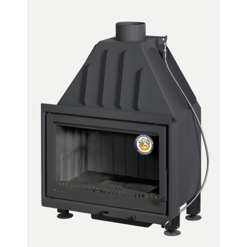 Топка изготовлена из стали высокого качества. Топочная камера футерована шамотом. Стекло прямое. Дверка открывается в бок. В топке предусмотрена встроенная шиберная заслонка. Высокий дымосборник обеспечивает дополнительный дожиг дымовых газов, что повышает КПД топки и теплоотдачу. За счет стеклокерамики и герметичности дверки обогрев происходит в три раза выше, чем в открытом очаге. С помощью системы «чистое стекло» стекло всегда остается чистым.