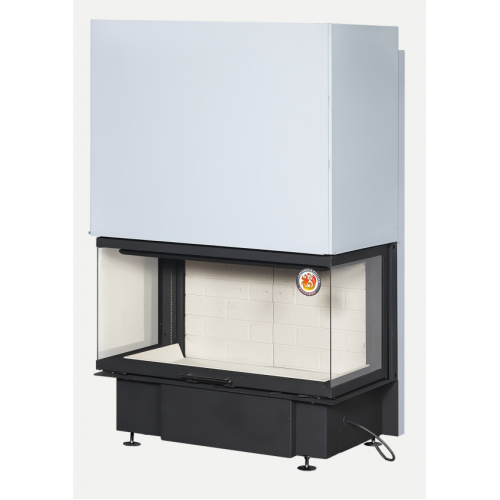 Высокий дымосборник обеспечивает дополнительный дожиг дымовых газов, что повышает КПД топки и теплоотдачу. За счет стеклокерамики и герметичности обогрев происходит в три раза выше, чем в открытом очаге. С помощью системы «чистое стекло» осуществляется полный обзор огня.