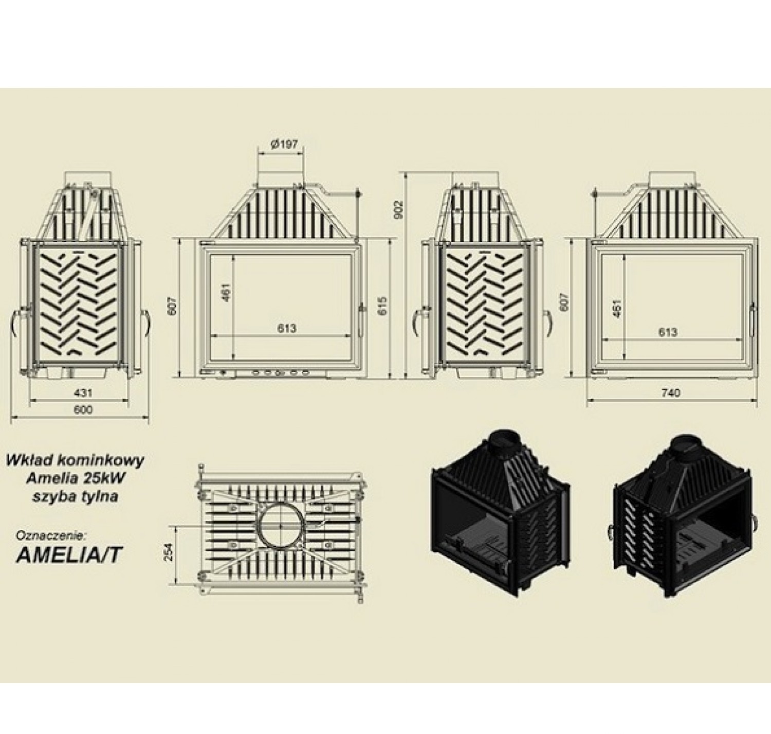Amelia Т— топочная камера или топка-вкладыш, предназначенная для отопления дома площадью до250 кв.м. Топка туннельного типа может быть установлена встену, разделяющую комнаты или вдекоративные стены-перегородки, делящие помещения назоны, а также вширокие колоны. Чугунная топка Amelia Тимеет два фасада, большие прямоугольные плоские стекла позволяют любоваться живым огнём, адве дверцы— обслуживать топку слюбой удобной стороны. Особенности оборудования серии Amelia ТотKRATKI: Чугунная топка непрерывного сгорания; Топка высокой мощности, предназначена для больших помещений; Топка туннельного типа сдвумя фасадами; Теплоемкость прибора увеличивают ребра повсему корпусу; Топливо— сухие дрова длиной до500 мм; Стекло— термостойкая стеклокерамика, предел нагрева 800 С; Полная герметичность дверцы; Система «двойного дожига»; Топка имеет съемную ручку надверце; Прозрачность стекла обеспечивает система встроенного обдува; Предусмотрен держатель дров— непозволяет рассыпаться при открытии дверцы; Дно топочной камеры имеет отверстие для золы.