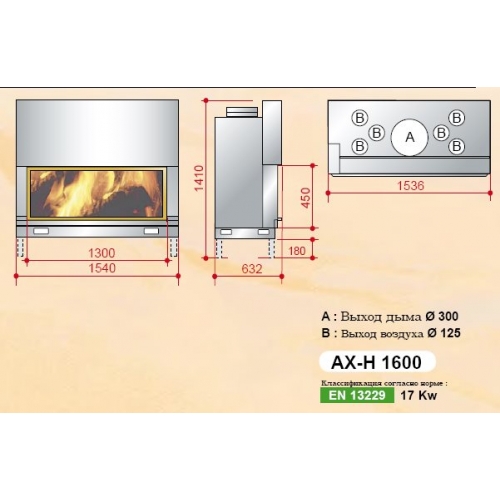 • Обязательный подвод свежего воздуха: поперечное сечение отверстия не менее - 300 см2