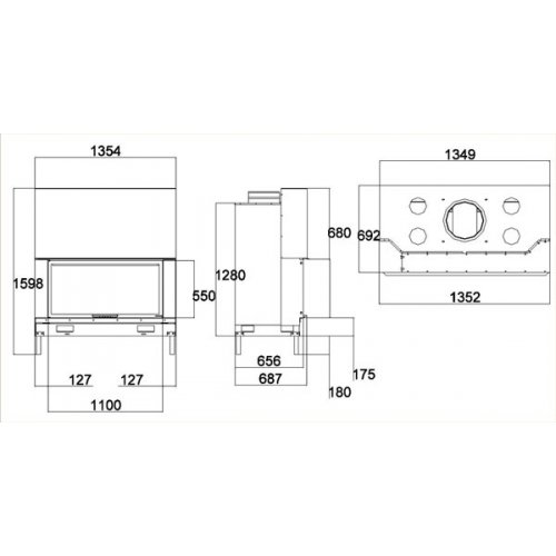 - Поперечное сечение отверстия выхода дыма - диаметр 300