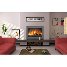 Топки Stil-kamine с большим прямым стеклом выпускаются в трех различных типоразмерах и с подъемной дверцей, а также двухсторонние сквозные топки с горизонтальным или вертикальным открытием дверцы.