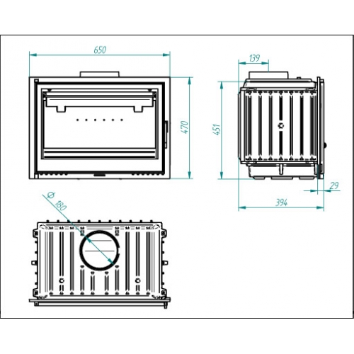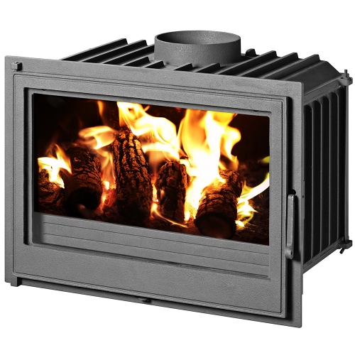 Чугунная топка обогревает помещение с помощью теплового излучения как самой топки, так и обзорного стекла. Зигзагообразные ребра на внешней стороне топке и дымосборника обеспечивает дополнительную площадь теплоотдачи. Топка снабжена герметично закрывающейся дверцей с большим обзорным стеклом, устойчивым к высоким температурам. Каминная топка C-18 снабжена механизмом регулировки процесса горения – интенсивность изменяется с помощью специальной задвижки. Эффективность горения увеличивает система вторичного дожига – на задней стенке расположено отверстие, через которое поступает нагретый воздух. Такая система способствует повышению КПД по сравнению с моделями, не имеющими вторичного дожига.